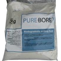Pure-Bore is a dry free flowing polymer that mixed with water produces a natural biodegradable drilling fluid, which can be used in a variety of drilling applications.